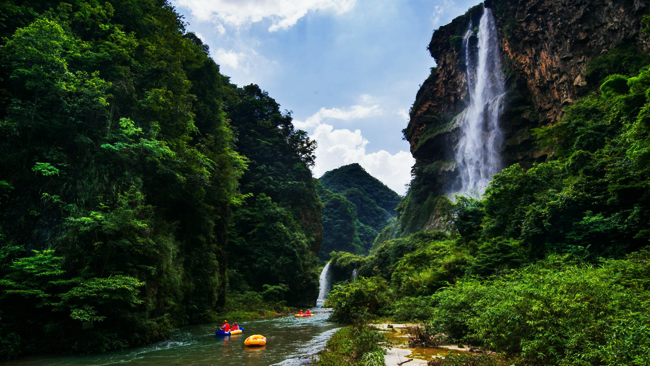 游玩特色:溶洞漂流穿越亿年钟乳奇观,天生桥瀑布飞泻,竹筏激荡探秘“贵州洞中漂流绝景。